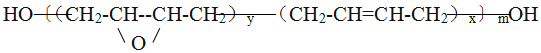 環(huán)氧化端羥基液體聚丁二烯(英文縮寫為EHTPB),是在端羥基聚丁二烯大分子上引入環(huán)氧基團(tuán),不但有效提高大分子極性,而且引入的環(huán)氧基團(tuán)作為反應(yīng)性官能團(tuán),可以與聚氨酯交聯(lián)固化過程中產(chǎn)生的氨基活潑氫發(fā)生進(jìn)一步交聯(lián),提高聚氨酯材料的力學(xué)性能,粘合強度和耐熱性。
